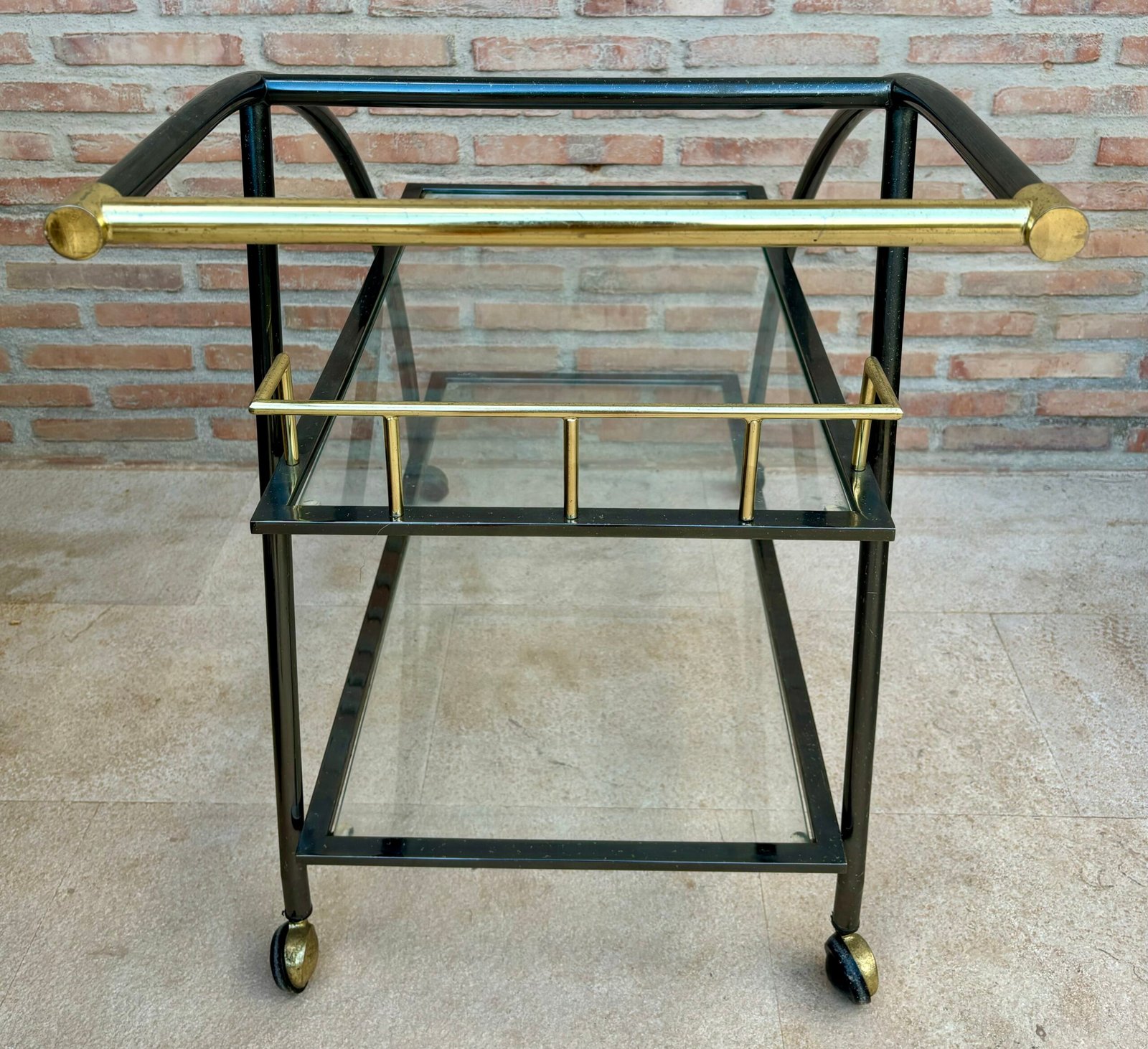 Carrito de bar de latón y vidrio de finales del siglo XX
