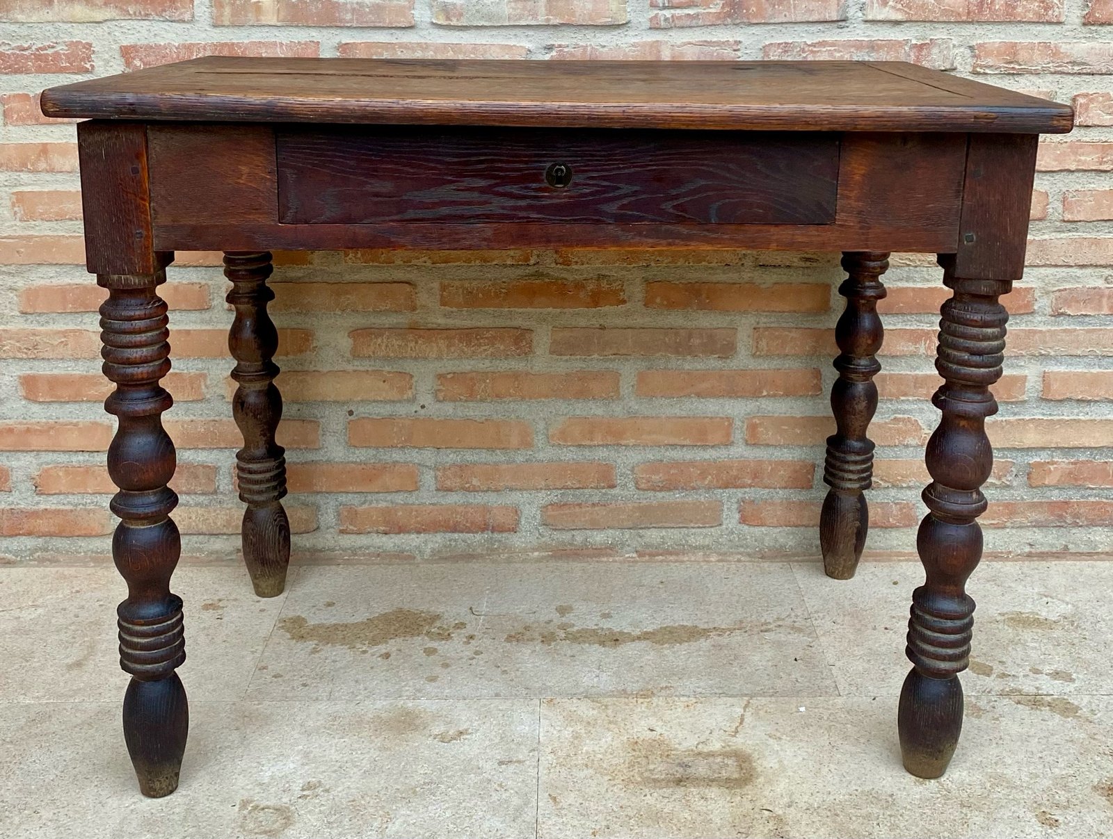 Preciosa Mesa Auxiliar o de Trabajo en Roble de los años 40. Cuenta con un tirador de cajón y bastidor de madera de roble.