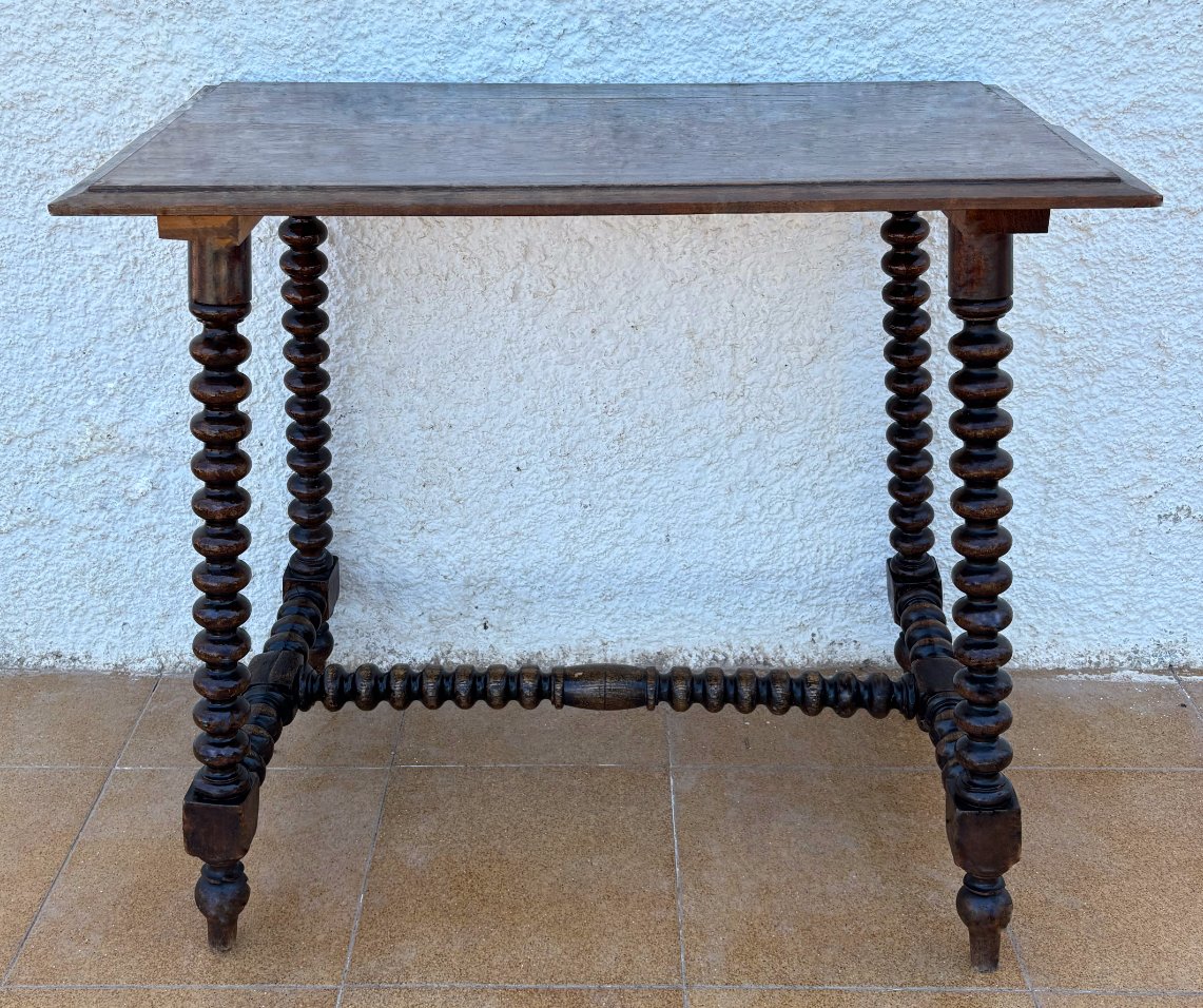 Mesa auxiliar española de principios del siglo XX con patas salomónicas en buen estado.