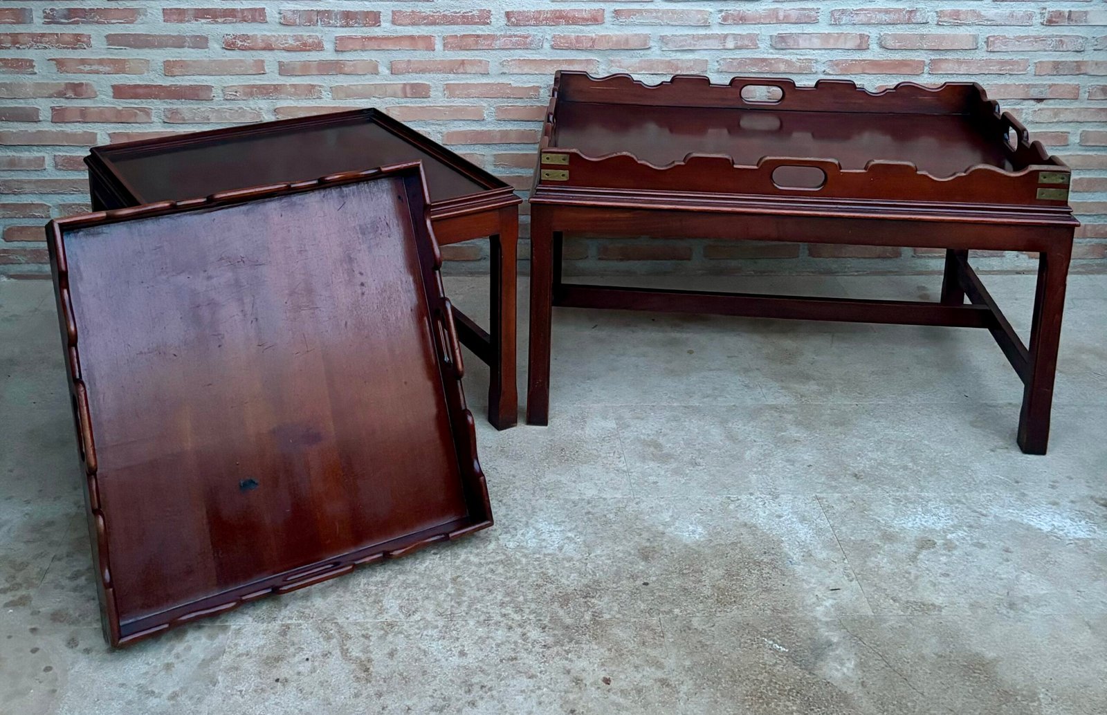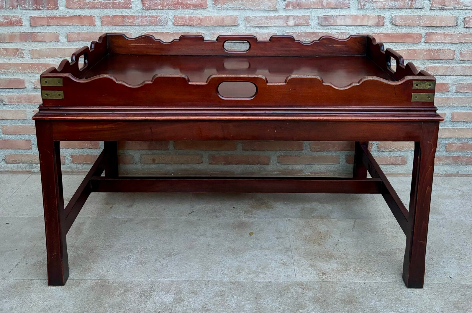 Mesa auxiliar o mesa de centro de madera de principios del siglo XX con una gran bandeja extraíble, década de 1920.