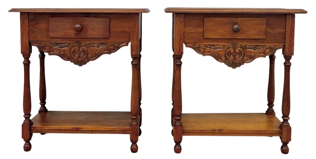 Sé el primero en valorar “Mesitas de noche de roble con cajones, década de 1920, juego de 2”