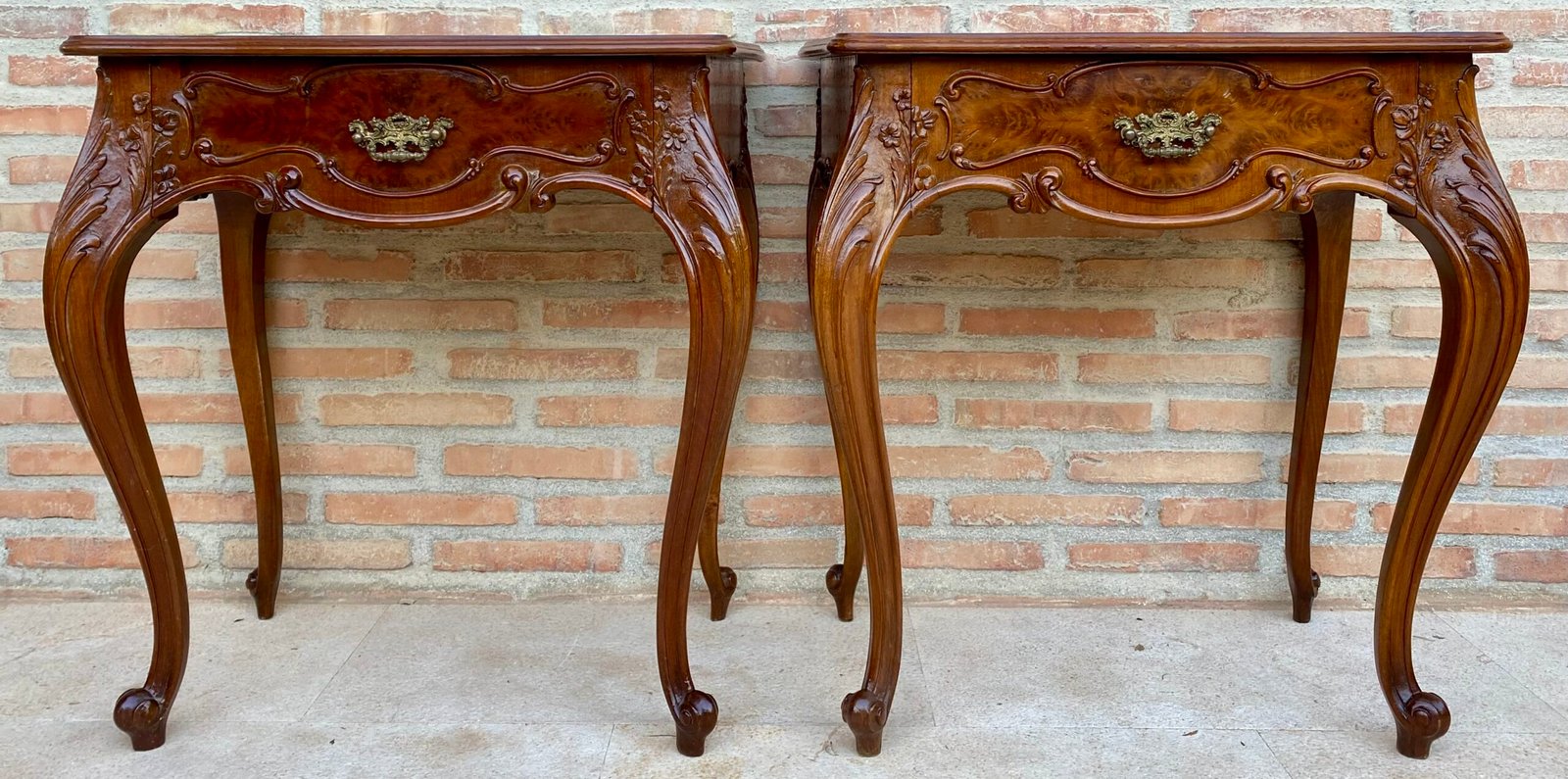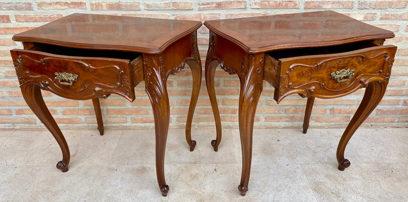 Mesitas de noche francesas del siglo XX con un cajón y patas convertibles, siglo XX, juego de 2