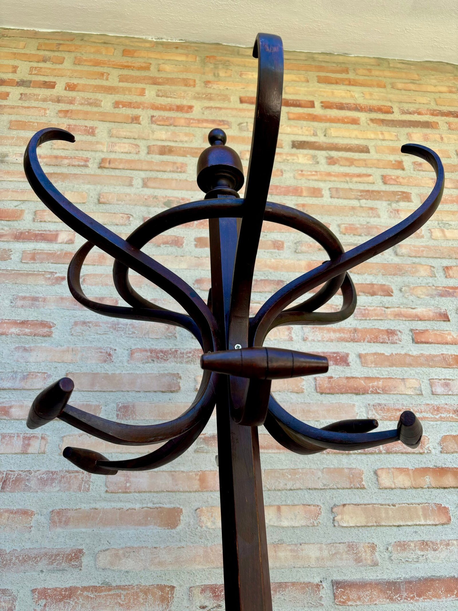 El perchero Thonet de principios del siglo XX ofrece gran comodidad gracias a su rotación. Se conserva en su estado original con una bonita pátina de envejecimiento, perfectamente limpiado y repulido.